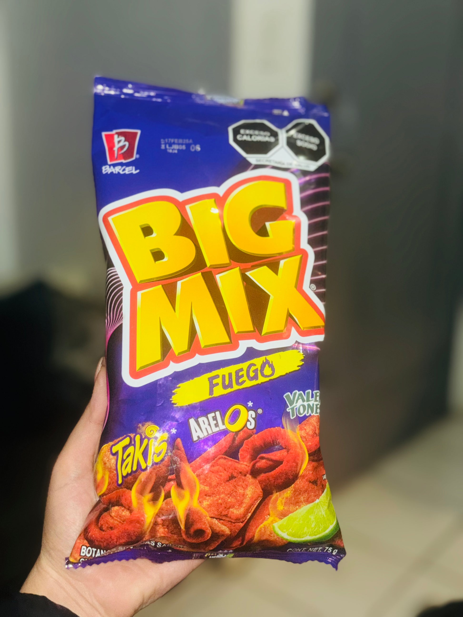 Sumérgete en la diversión de los sabores con la Botana Big Mix Fuego en su envase de 75 gramos. Esta mezcla variada de botanas, desde palomitas hasta frituras, te brinda un festín de sabores picantes que te mantendrá cautivado en cada mordisco. Disfruta de la emoción de un mix que despierta tus sentidos.
